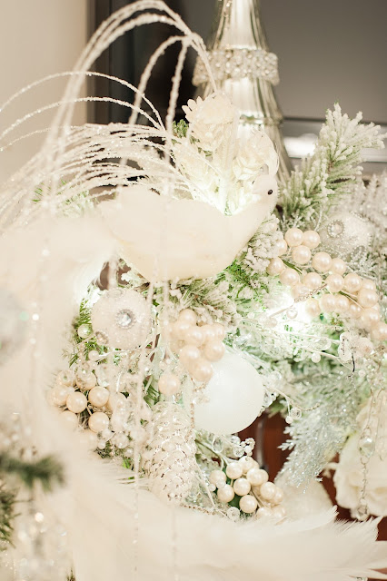 For the last couple of years I have been doing a white Christmas tree, it has taken preference over my other color schemes I have used in the past.  Don't get me wrong, I still love my pink themed tree of the past, and my red and gold themed tree, but right now the all white, creams, and crystals capture my heart.